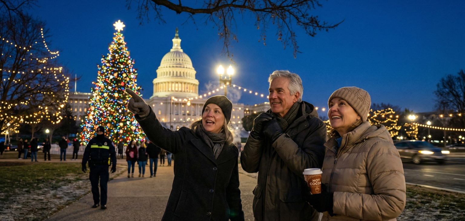 Walk toward Dupont Circle and feel the vibrant holiday energy. Discover cultural traditions expressed through lights, music, and seasonal details. Continue to the Heurich House where history blends with festive charm.